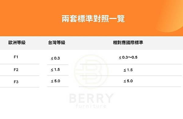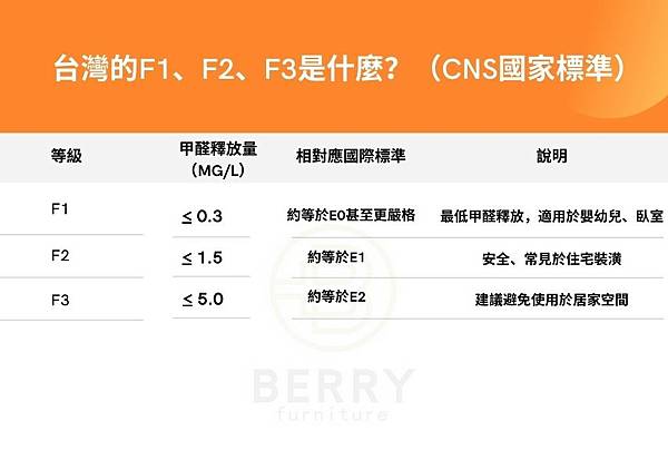 台灣則有自己的CNS國家標準,針對木質材料的甲醛釋放量也分為F1~F3等級。